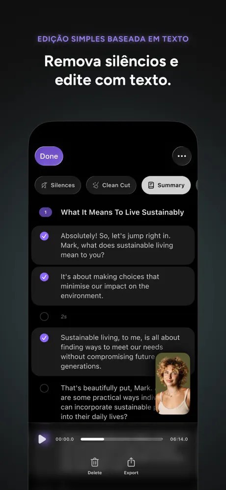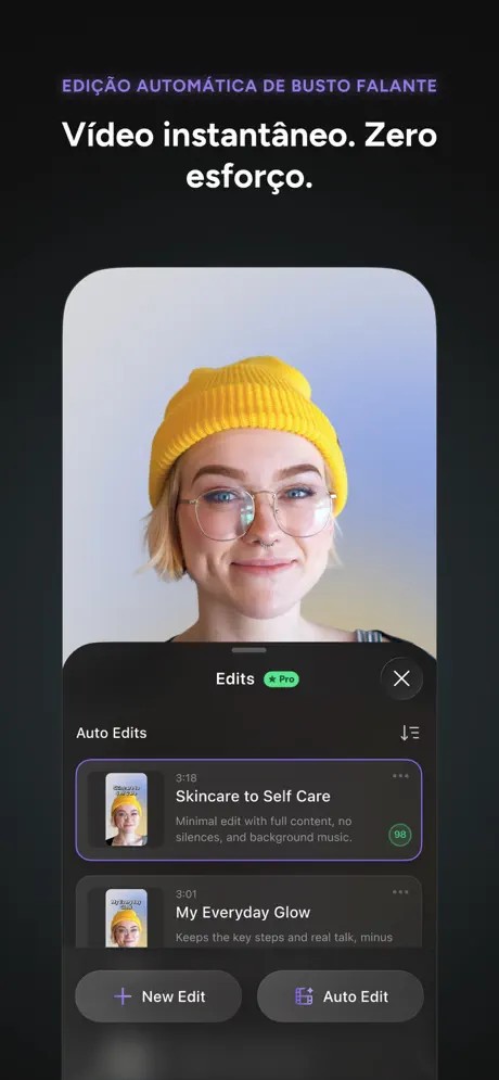 O recurso Auto Edit faz mágica: corta pausas automaticamente, aplica zooms certeiros, adiciona legendas e ainda gera várias versões prontas do mesmo vídeo. É edição sem cara de edição — leve, rápida e com resultado profissional.
