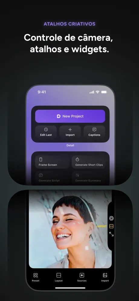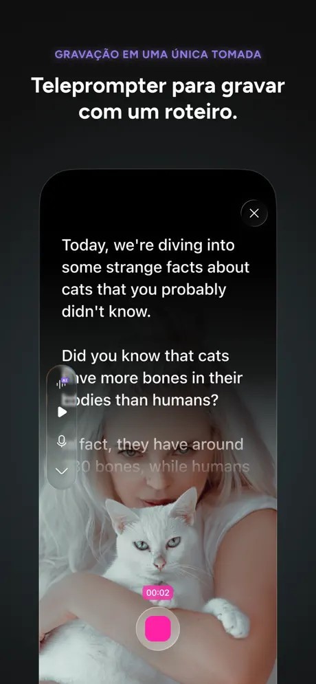 Criadores do TikTok, Instagram, YouTube Shorts e podcasters vão se sentir em casa. O teleprompter integrado evita esquecimentos na hora da gravação, enquanto a possibilidade de conectar vários iPhones transforma qualquer mesa em um miniestúdio multicâmera. Dá até para importar vídeos da internet e gravar podcasts com transições de áudio suaves — tudo dentro do mesmo ambiente.